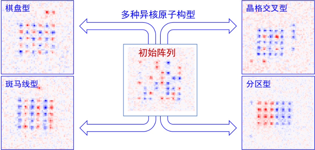 从随机装载的异核原子初始阵列排列成多种不同形状的原子构型