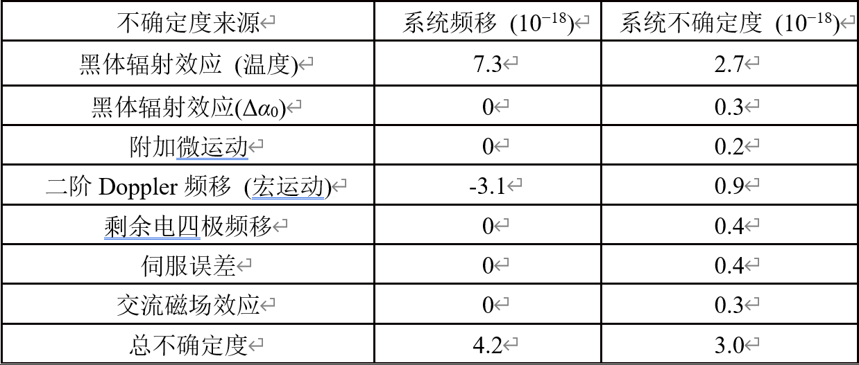 钙离子光频标系统误差评估表